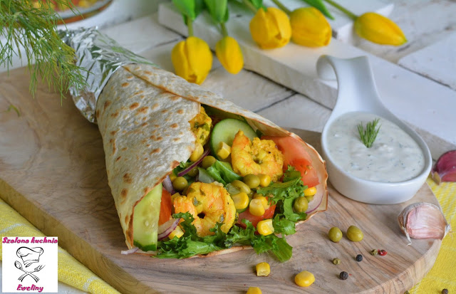 Domowy Fast Food w całkiem nowej odsłonie z owocami morza. Delikatne, dobrze przyprawione krewetki, warzywna salsa bogata w dużą ilość naszpikowanych witaminami kolorowych warzyw. Całość podana z domowym, wyrazistym sosem to świetna alternatywa dla gotowego jedzenia z budek. Fajny pomysł na sycący i wartościowy obiad lub przekąskę.