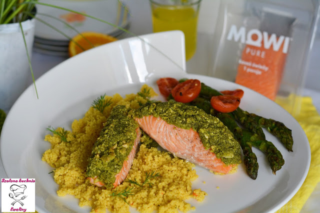 Łosoś pod ziołową pierzynką z kuskusem i szparagami