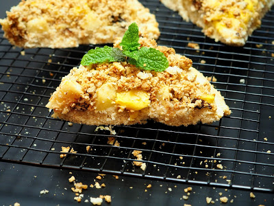 Pizza z owocami? Czemu nie! Ale nie jest to taka zwykł pizza, a bezglutenowa – z mąki ryżowej oraz owsianej. Do tego kruszonka z płatków kasztanowych, no i oczywiście owoce – u mnie: jabłka oraz mango. Do tej pizzy, oprócz jabłek i mango, pasują również inne owoce, jak: borówki, maliny,