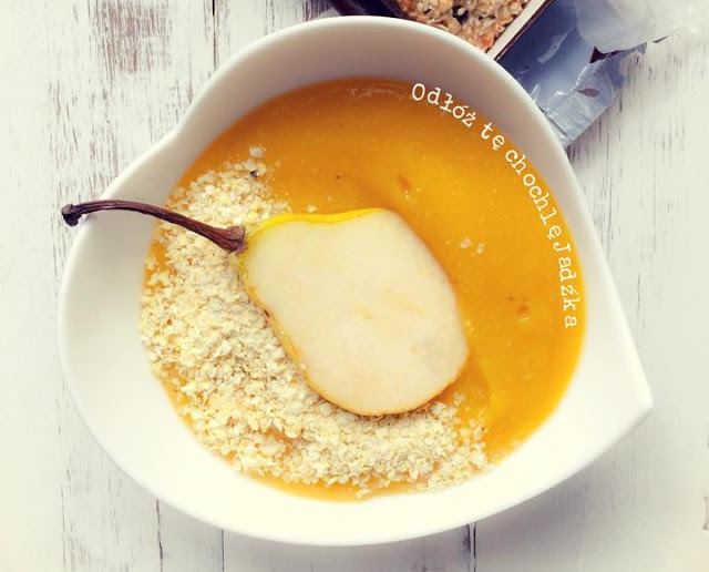 Gruszkowy mus jaglany, koktajl na gęsto na śniadanie z płatkami jaglanymi