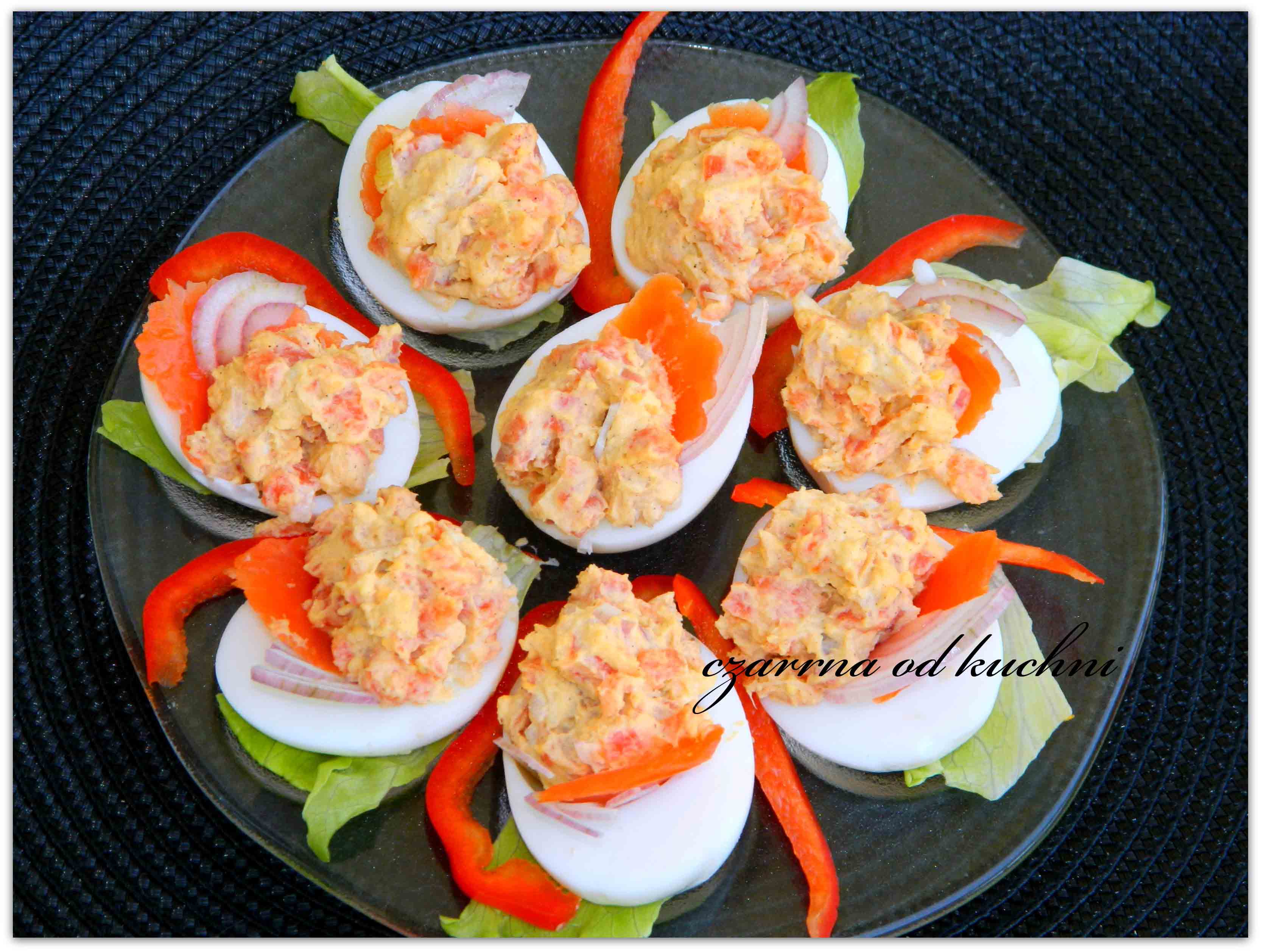 Jajka ugotować na twardo, obrać, wystudzić zetrzeć na tarce jarzynowej,