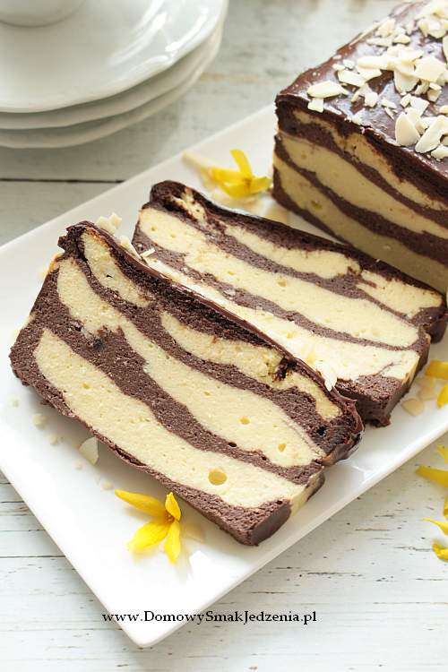 Masło miksujemy z cukrem kryształem i cukrem z wanilią. Dodajemy jajka a następnie ser oraz budyń, miksujemy do połączenia się składników.