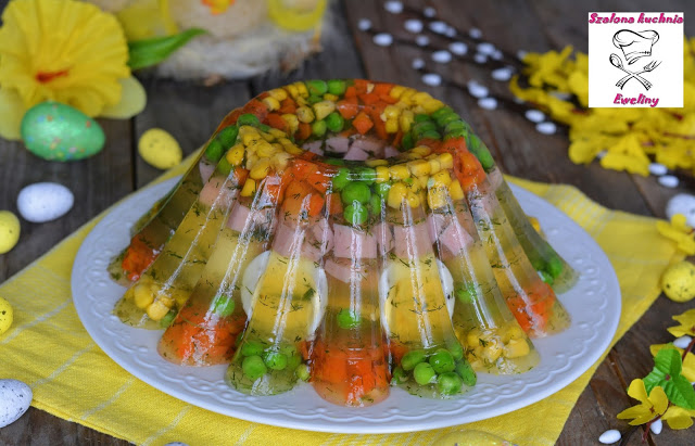 Wielkanocna babka z koperkową galaretą, jajkiem, szynką i warzywami
