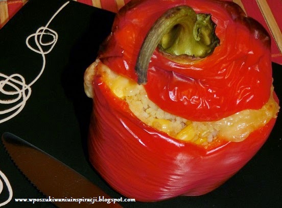 Papryka faszerowana kaszą kuskus, kukurydzą i kurczakiem