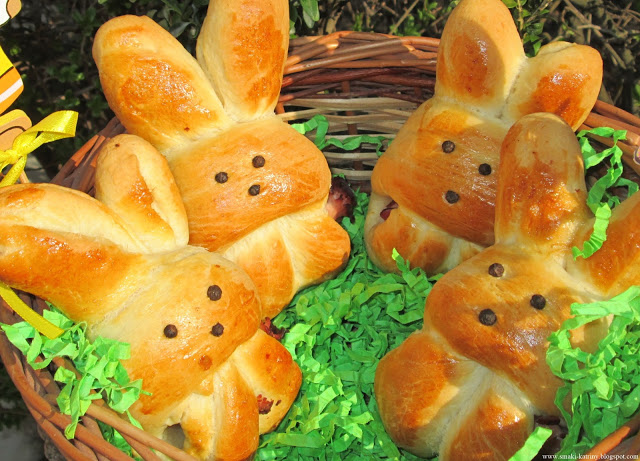 Drożdżowe zajączki wielkanocne z szynką
