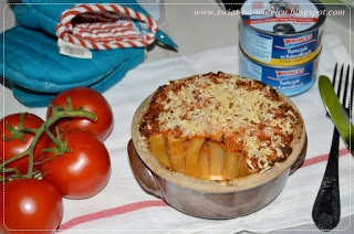 Dziś mam kolejną propozycję na wykorzystanie tuńczyka z puszki w kuchni. Bedzie to smaczna zapiekanka makaronowa z sosem pomidorowym i tuńczykiem. To taka miła odmiana od klasycznego makaronu z sosem.