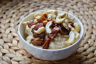 orzechowo karmelowy tofu krem z bananem, masłem orzechowym, maca, daktylami i nerkowcami…