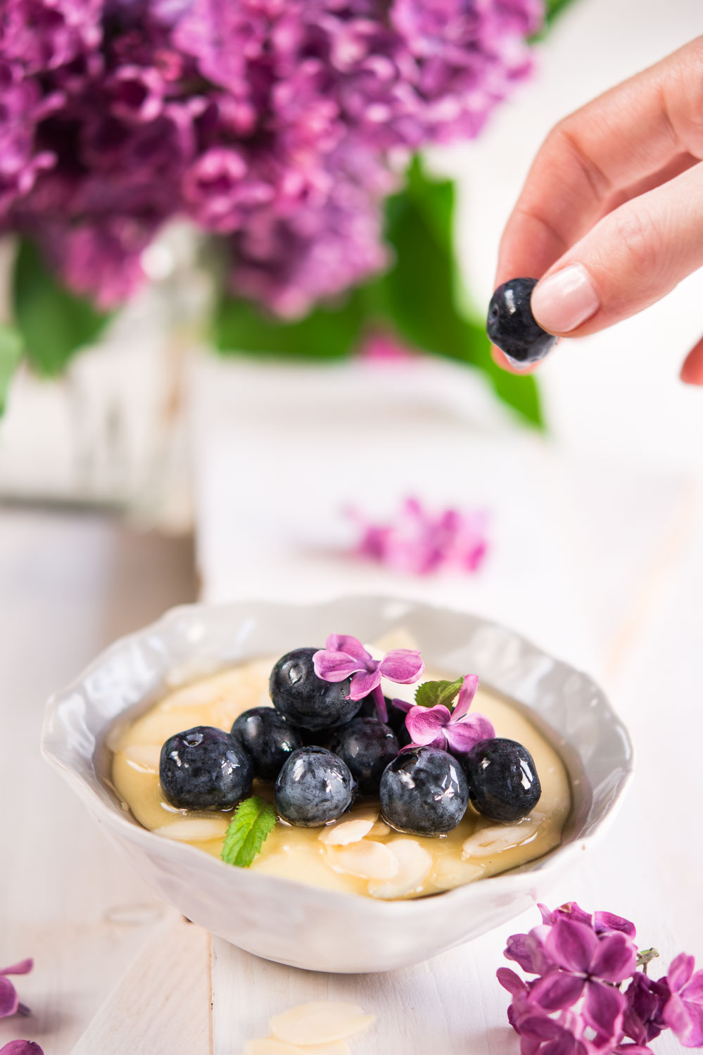 MIGDAŁOWA POLENTA Z BORÓWKAMI – SKŁADNIKI: