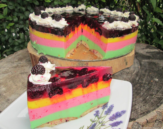 Sernik składa się z 3 warstw o innych kolorach, jednak przygotowujemy je tak samo, zmieniając tylko kolor galaretki.