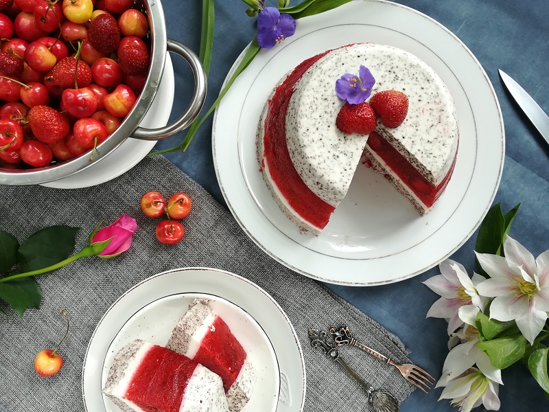 To już ostatnie ciasto z wykorzystaniem świeżych truskawek (chyba). Deser jest jednym z moich ulubionych i robię go już od kilku lat w sezonie truskawkowym. Oczywiście można wykorzystać mrożone truskawki i smakuje tak samo bajecznie. Polecam wypróbować.