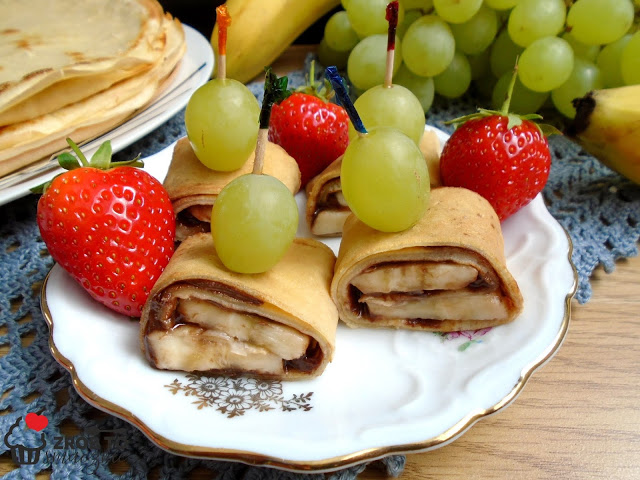 Pomysłów na naleśniki jest naprawdę sporo. Koreczki z naleśników to doskonały pomysł na przekąskę imprezową zarówno dla dorosłych jak i dla dzieci. Posmarowane masłem czekoladowym, przełożone bananem lub innym ulubionym owocem to rozkosz dla podniebienia. Można je śmiało podać jako śniadanie czy podwieczorek dla dzieci. Moja córka uwielbia naleśniki a