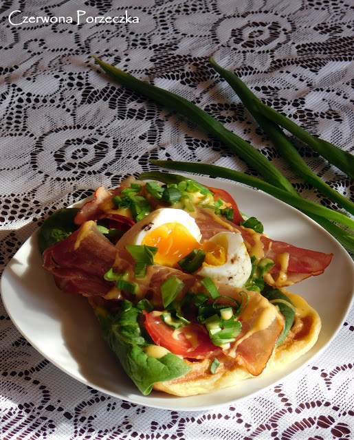 4 jajka4 rzodkiewki1 biała cebula2 kiszone ogórki4 plastry szynki z indyka1 łyżka majonezu2 placki tortilli wieloziarnistejKilka liści sałatySólPieprz