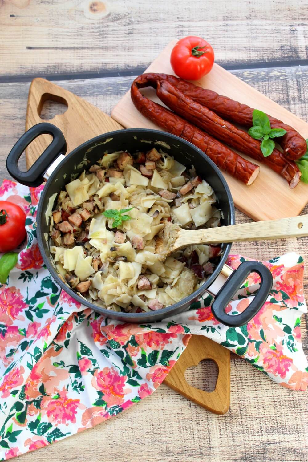 Łazanki z białą kapustą, kiełbasą i pieczarkami Dziś mam dla was prosty…