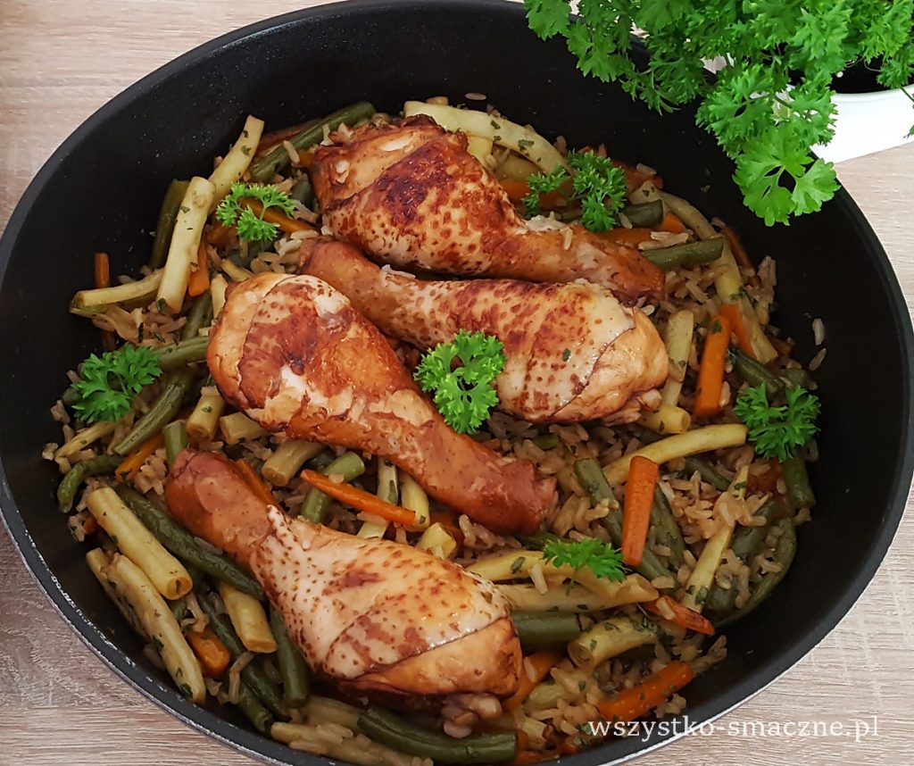Aromatyczne pałki kurczaka z fasolką szparagową to pyszne danie obiadowe z brązowym ryżem, które przygotowuje się w łatwy sposób, a smakuje wybornie.