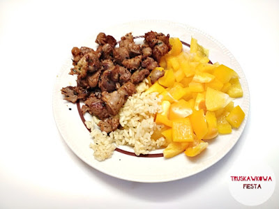 Składniki:200g żołądków drobiowych25g ryżu białego + wodapapryka żółtaolej lnianyprzyprawy: pieprz czarny, czosnek granulowany, papryka wędzona, czosnek niedźwiedzi