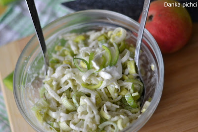 Zazwyczaj do obiadu przygotowuję surówki na bazie kapusty lub sałaty. Tym razem jednak postanowiłam coś zmienić i przygotowałam ekspresową surówkę z pora z jabłkiem. Możną ją również podać do potraw z grilla lub jako dodatek do kanapek i wędlin.Składniki: