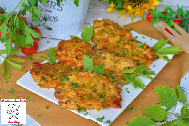 Bardzo ciekawe połączenie świeżych warzyw, pachnącego lubczyku oraz królującego w naszych domach fileta z kurczaka w postaci klasycznych kolorowych placuszków. Świetny pomysł na przemycenie najmłodszym porcji witamin.