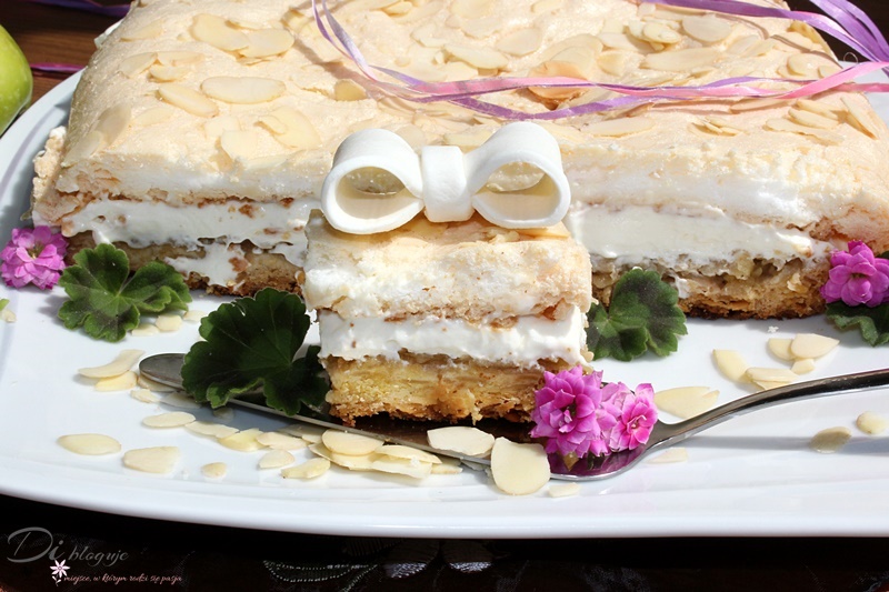 Ciasto jest przepyszne i jestem pewna, że przypadnie do gustu zarówno miłośnikom szarlotek, jak i zwolennikom kremu mascarpone połączonego z bezą. Całość idealnie komponuje się z kruchym, lekko migdałowym spodem.Może jest troszkę zabawy z bezą, ponieważ najlepiej