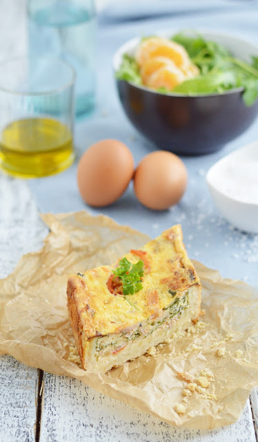 Quiche z szynką, pomidorami i rukolą