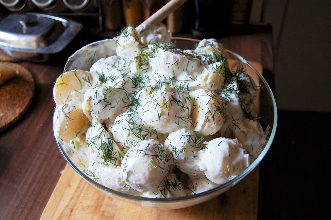 Sałatka ziemniaczana , nie wiem na pewno ,czy jest to potrawa rodem z Norwegii , czy też twór jak ryba po grecku , która Grecji nie widziała Jest to fakt ,nader mało istotny , najważniejsze jest ,że wszyscy z wyjątkiem naszego dwunastoletniego niejadka , są nią zachwyceni