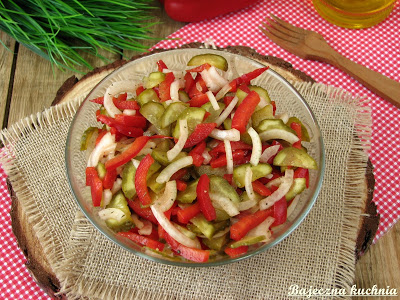 Prosta i smaczna sałatka do obiadu z papryki i ogórków małosolnych, przygotowanie…