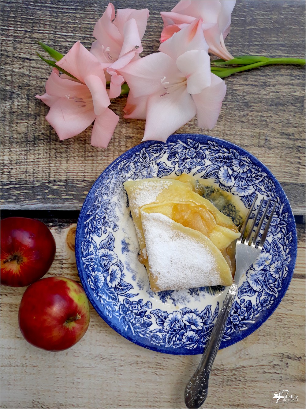 Naleśniki z plasterkami karmelizowanych jabłek. Dziś zapraszam Was jedne z naszych ulubionych naleśników. W tej wersji można się zakochać. Tak przygotowane jabłka są delikatne i dosłownie rozpuszczają się w ustach. Zamiast kroić je w kostkę, robię z nich cieniutkie plasterki. Ja do tego używam