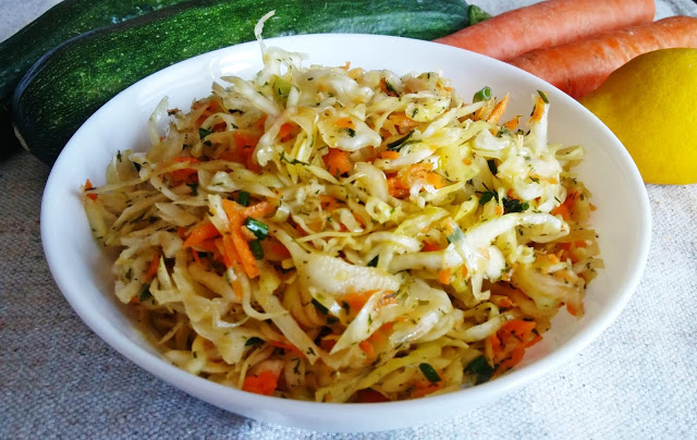 Prosta surówka do dań obiadowych z młodej kapusty z marchewką. Składniki:mała główka…