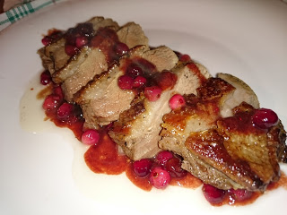 pierś z gęsi w śliwkowo żurawinowym sosie