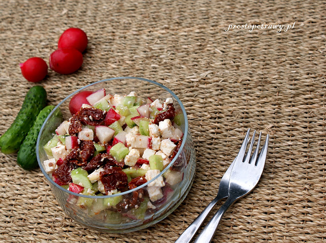 Składniki : ok. 8 sztuk suszonych pomidorów w oleju7 rzodkiewek3-4 średnie ogórki…