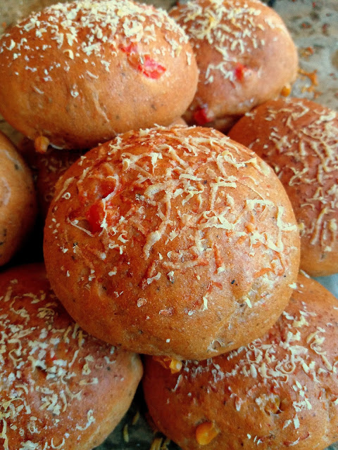 Tym razem polecam bardzo smaczne, mięciutkie i puszyste bułeczki paprykowe z parmezanem. Utrzymują świeżość na drugi dzień i są idealną bazą do wytrawnych kanapek. Właściwie są dobre same w sobie i nie potrzebują wielu dodatków:) Do swoich bułeczek dodałam troszkę świeżej papryki i kukurydzy, które akurat