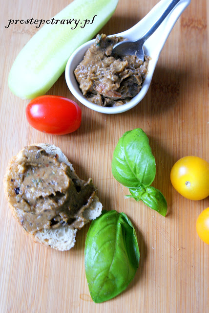 Na pewno byłaby jeszcze smaczniejsza gdyby bakłażan był pieczony, ale i tak pasta szybko została zjedzona. Na chlebku z pomidorem i ogórkiem 🙂