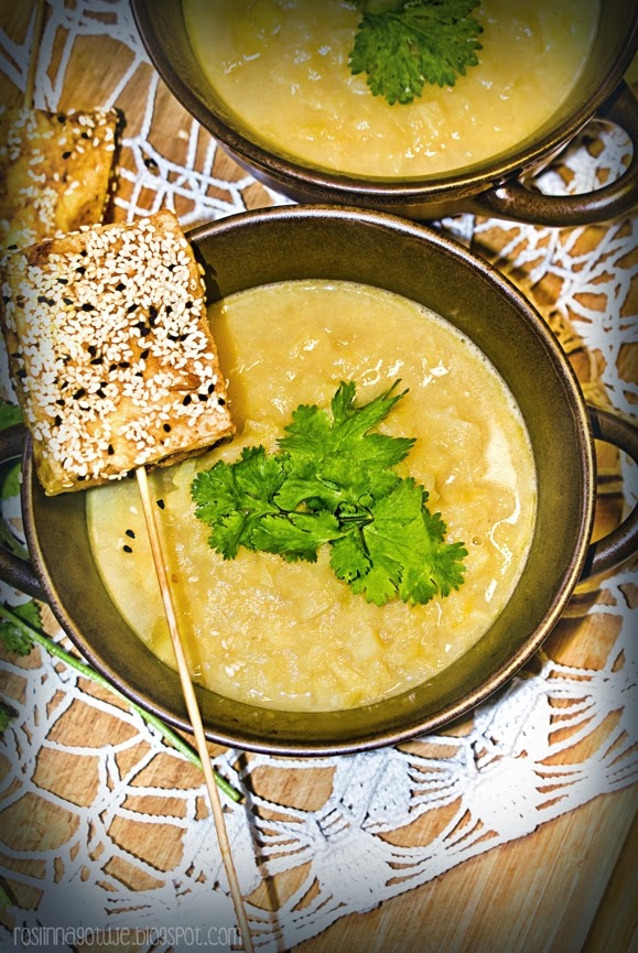 Zupa porowo-jabłkowa z sezamowymi lizakami tofu