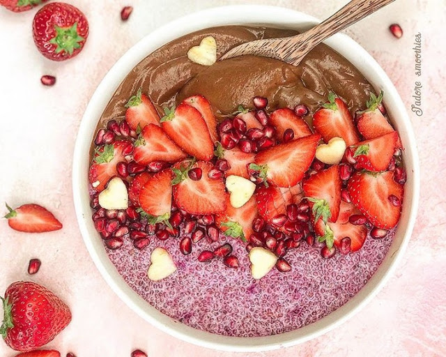 Dwusmakowa miska koktajlowa, mus z batatów z chia puddingiem o smaku pitaja
