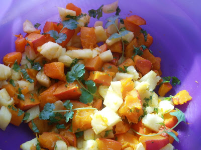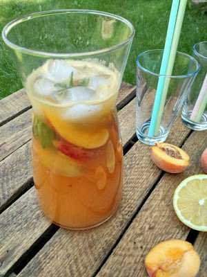 2. Do wody dodajemy mus brzoskwiniowy, sok z cytryny i miętę.