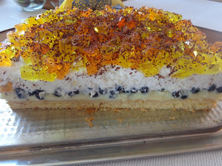 Dziś ciasto piętrowe z owocami sezonowymi, w tym wypadku z borówkami 🙂…