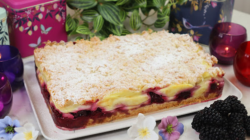 Kruche ciasto budyniowe z owocami