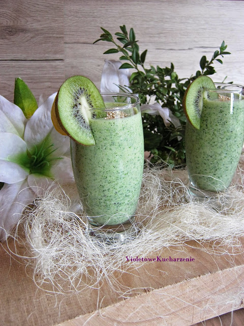 Orzeźwiający, pełen magnezu, żelaza, witamin i przeciwutleniaczy, zdrowy koktajl na bazie kiwi…