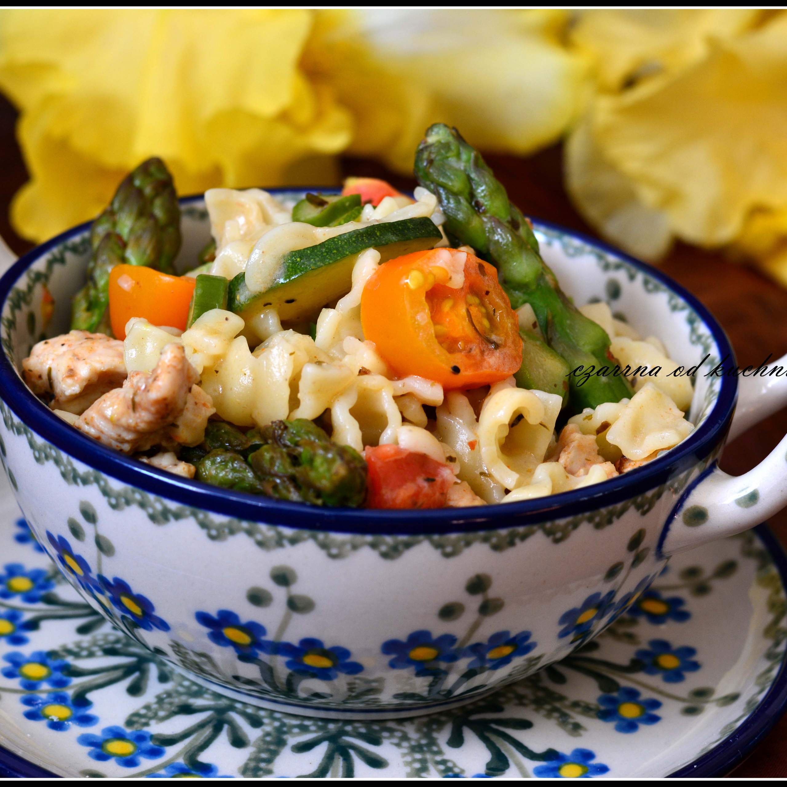 Składniki: 40 dkg fileta z indyka 1 pęczek szparagów kawałek cukinii garść…