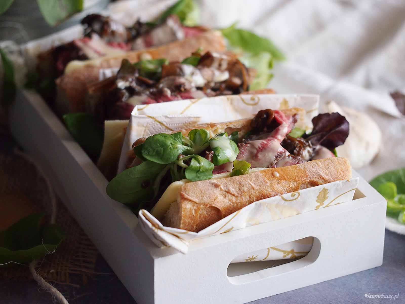 Dziś prezentuję doskonały pomysł na śniadanie, lunch a nawet kolację. Pyszna i sycąca kanapka z soczystym stekiem, cudownymi balsamicznymi pieczarkami, serem żółtym Maasdamer od Hochland i sosem miodowo-musztardowym z pewnością zachwycą każdego. Jest ona bardzo łatwa w przygotowaniu i wbrew pozorom też szybka. Polecam gorąco!