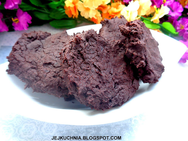 Składniki:puszka czerwonej fasoli,jajko,50 g brązowego cukru (lub zwykłego),100 g gorzkiej czekolady,20