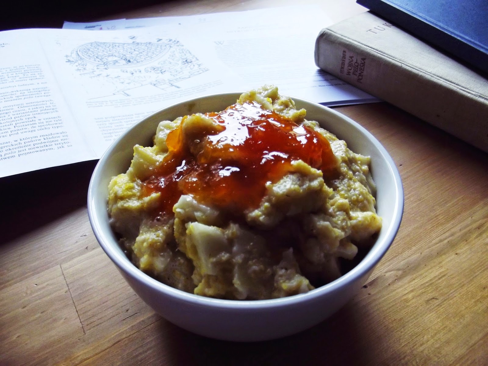 kaszka kukurydziana z cynamonem, bananem, jabłkiem i dżemem z dynicorn porridge with…