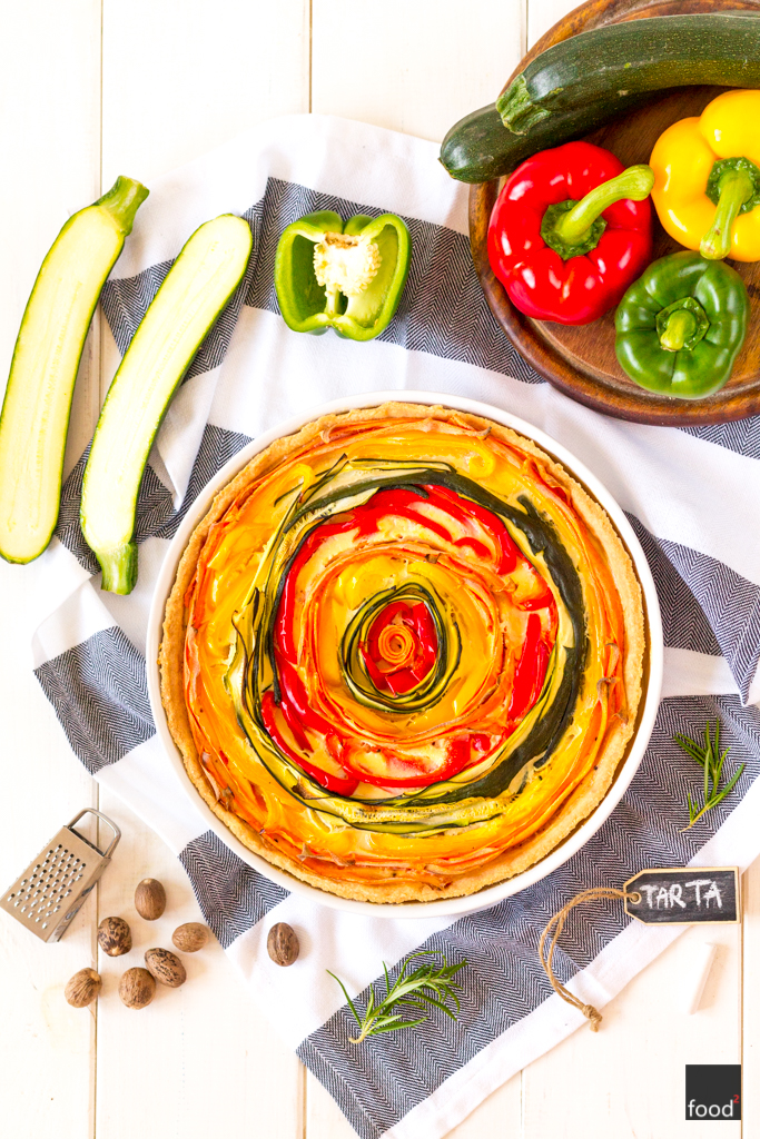 Zakręcona tarta z warzywami to mega prosty pomysł na efektowne i szalenie proste danie! Wystarczy zagnieść kruchy spód i pokroić ulubione warzywa w paski (najlepiej nadają się cukinia, marchew, papryka, bakłażan, czy pietruszka). Później tylko trzeba je ułożyć w formie rozety, zalać jajeczną masą i zapiec. Do nadzienia polecam dodać
