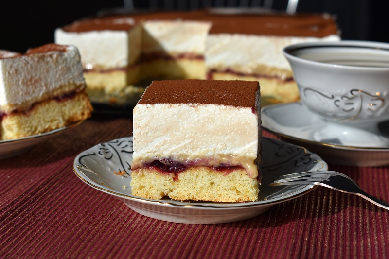 Torcik jogurtowy Monte to biszkoptowe ciasto orzechowe przełożone masą jogurtową z dodatkiem deserów mlecznych Monte. Ciasto jest lekkie i bardzo przyjemnie się go je 😉 Nie jest też przesłodzone. Ze względu na to, że desery Monte zawierają w składzie sporą ilość cukru, to masy dodatkowo nie słodziłam, dlatego po wymieszaniu