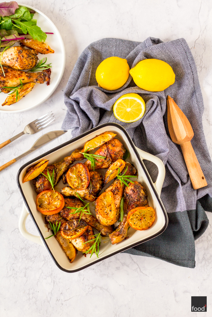 Chrupiące pieczone udka z kurczaka z cytryną i rozmarynem to smakowity pomysł na ekspresowy obiad. Delikatne mięso i chrupiąca skórka z ziołowo-cytrusowym aromatem to dowód na to, że drób nie musi być nudny. Udka z kurczaka polecam podać z pieczonymi ziemniakami, ryżem albo lekką sałatką z oliwą z oliwek.