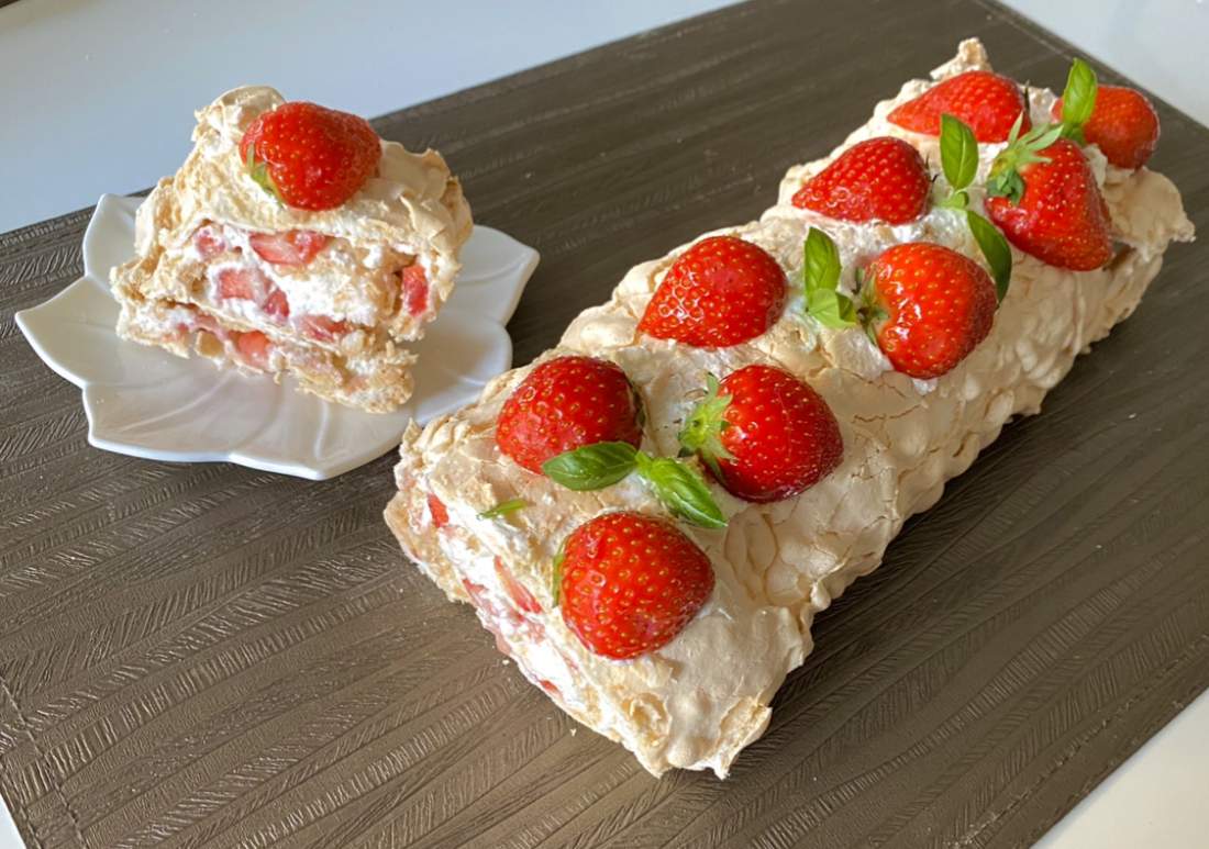 Rolada bezowa z bitą śmietaną i truskawkami Och jak ja uwielbiam rolady…