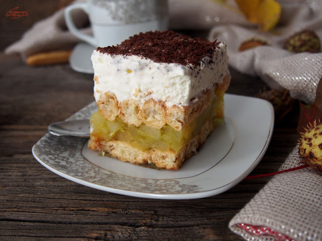 Ostatnie ciepłe dni i zapas słomki ptysiowej od firmy Brześć skłoniły mnie do wymyślenia jakiegoś ciasta bez pieczenia. Z założenia miało być smacznie i szybko, a do tego nie za słodko i z jesiennym akcentem. Mogę śmiało napisać, że „misja zakończona pełnym sukcesem” i podzielić się przepisem,