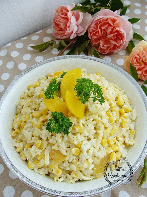 Połączenie soczystych brzoskwiń , pędów bambusa, ryżu i kurczaka to udany eksperyment.Sałatka…