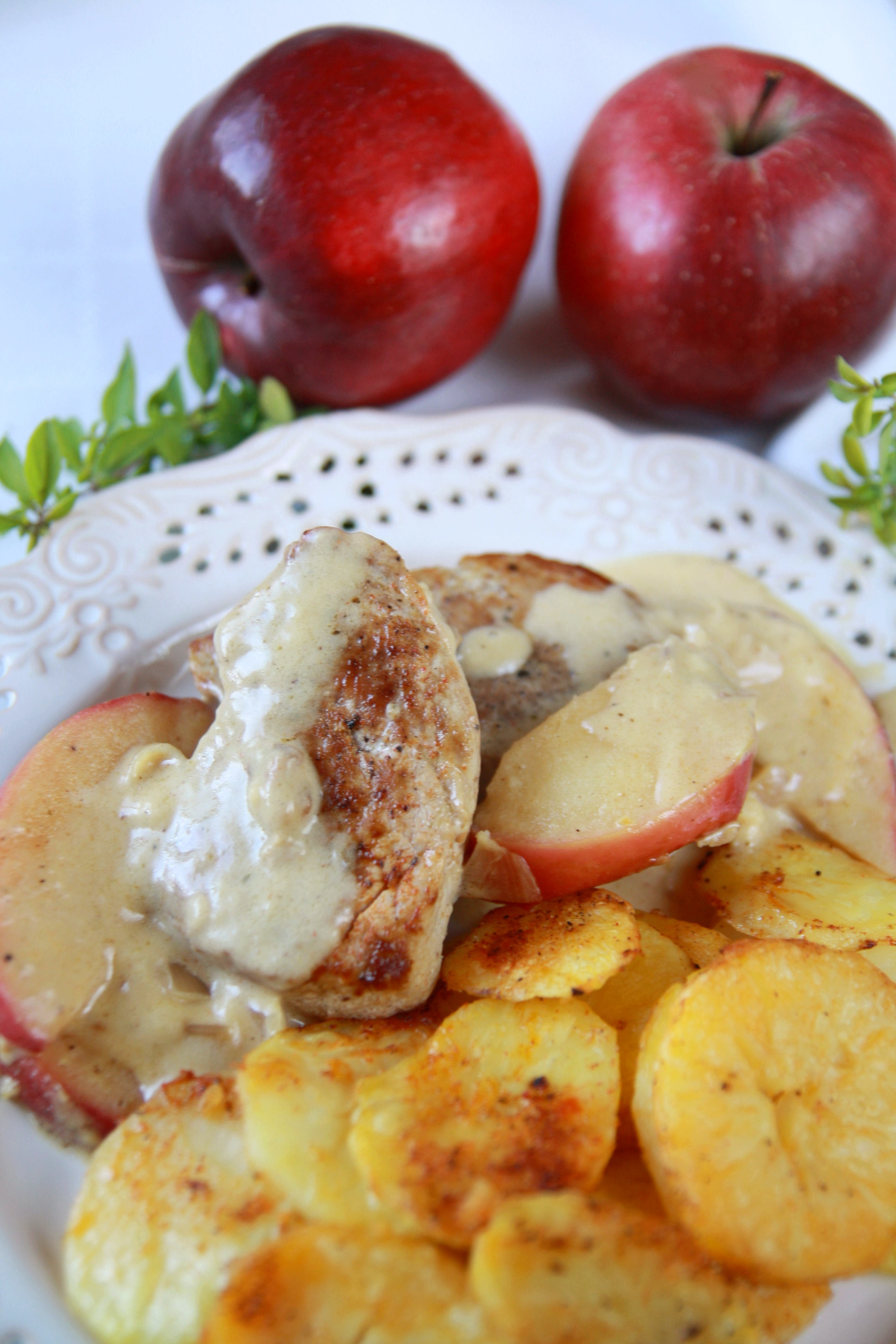 Pyszne i soczyste mięso duszone w kremowym, słodkawym sosie z jabłkami i nutą cynamonu to idealny jesienny przepis. Z takim przepisem podbijecie serca domowników albo gości – jest to zarazem prosty przepis na niecodzienny obiad lub propozycja na wyrafinowaną kolacje we dwojga lub w większym gronie.