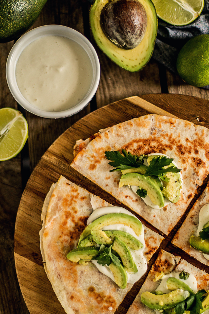 Szybki pomysł na przepyszny obiad? Meksykańska quesadilla! Do jej przygotowania potrzebujecie jedynie kilku składników. W tym przepisie proponuje użycie czarnej fasoli, jednak świetnie pasuje także czerwona, czy pinto. Do tego kilka przypraw, miękkie awokado i domowa, kwaśna śmietana na bazie mleka sojowego.