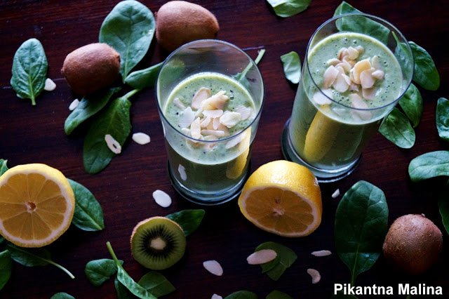 Składniki:– 2 duże garście szpinaku- 4 obrane ze skórki kiwi- sok z…